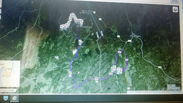 I fjor satte jeg kursen mot Halden for å dra på cachetursammen med Kjersti. På lørdag gjorde jeg det samme. Ganske tilfeldig, men det ble faktisk nøyaktig på dagen 1 år siden forrige tur. Kjersti er min cache-mentor så derfor er det litt ekstra stas å dra for å cache i hennes område. Hun legger jo også ut det ene innlegget etter det andre på bloggen sin om fine turer hun har vært på, så i år hadde jeg lyst til at vi skulle på en slik tur. Turen var viktigere enn cachene med andre ord. Kjersti grublet litt og kom etter en stund med et forslag på 30 cacher. Er ikke snakk om tur med 2-3 cacher der i gården nei ;) De fleste lå i Sverige – selvfølgelig. Jeg laget «en tur» i www.cachetur.no og fikk dermed en liten oversikt over planen vår.