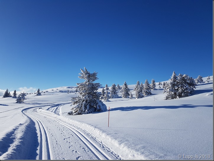 Og turen var så innmari fin. Ingen veldig bratte bakken oppover eller nedover, i hvert fall ikke verre enn at jeg kom meg opp med fiskebein og ned med ploging. Hadde kondisen vær der den burde være så hadde det vært bare fryd og gammen hele turen. Tilbake til bilen, ved Engene fjellstue var det nesten fritt for oppoverbakker. I følge endomondoen til Nøve, som er mer korrekt enn min så gikk vi 16 km. Vi tok visst en omvei og gikk lenger enn det turen egentlig var, men det går jo skiløyper på kryss og tvers i dette området. Og det var deilig å være ute i det fine været (bortsett ved matpausen)