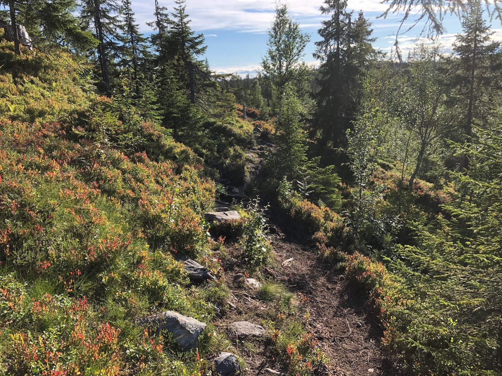 Stien varierte veldig. Her var det granskau, tydelig sti, godt merket og tørt å gå.
